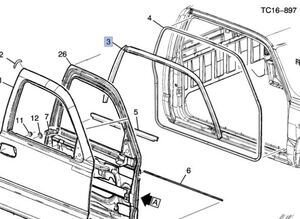 Front Passenger Side Door Roof Drip Weatherstrip - GM (15044908)